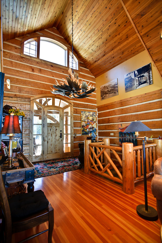 The purpose of this room is to enjoy the warmth and comfort of a Montana Log Crafter creation, while more importantly, inviting the surrounding mountains into your great room.